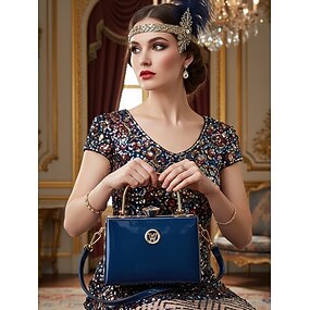 Sac à main de soirée en cuir verni bordeaux pour femme avec poignée dorée, style Gatsby vintage pour cocktails, mariages et événements officiels
