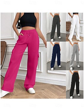 Femmes Pantalons Cargo Pantalons Pantalon décontracté Actif Vacances Mode Longueur complète Taille Moyenne Couleur Unie Uni Cordon de serrage Avec Poches Ceinture Élastique Confort Séchage Rapide Doux
