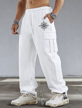 Homme Boussole Jogging Cargo Pantalon Jogger Pantalon décontracté Taille Moyenne Occasionnel Athlétique Randonnée Entraînement Taille élastique avec cordon de serrage Fond ouvert Pantalon tactique
