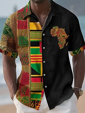 Juneteenth Homme Tribal Carte Ethique / Africain Chemise Chemise d'été Chemise Boutonnée Manche Courte Vintage Rétro Fête Été Printemps Col Rabattu Impression 3D chemises à col Bleu Rouge Kaki Noir