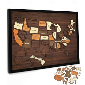 Puzzle en bois représentant la carte des États-Unis, outil pédagogique de géographie, 30,5 x 25,4 cm, carte touristique des monuments des États-Unis, jouet amusant, détails réalistes des monuments,
