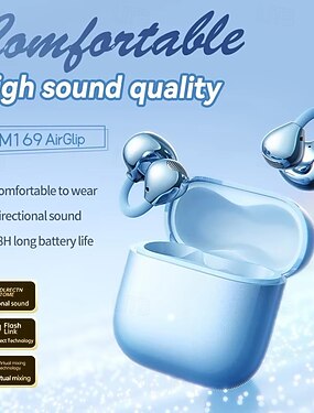 Casque sans fil à clip avec annulation de bruit Contrôle téléphonique Batterie rechargeable en lithium-polymère Conception de casque confortable pour le sport le camping et l'audio panoramique Cadeau
