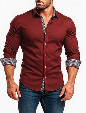 Homme Chemise Chemise habillée Chemise Décontractée Chemise Boutonnée Uni Formel Mariage Bleu Blanche Rouge manche longue Revers Été Printemps Vêtement Tenue Patchwork