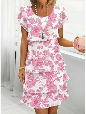 Femmes Mini Robe Robe Décontractée Robe en Chiffon Robe Fleurie Robes Péplum Élégant Mode Moderne Extérieur Vacances Sortir Coupe régulière Fleuri Manche Courte Col ras du cou Bleu Rose Claire Rose