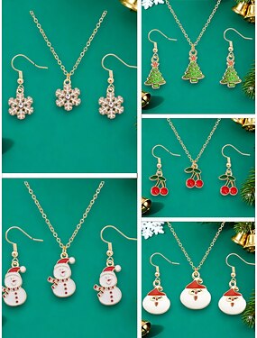 Ensemble de bijoux de Noël 5 pièces pour femme, joli flocon de neige, arbre, bonhomme de neige, cerise &ensembles collier et boucles d'oreilles Père Noël pour fête de fin d'année &cadeaux de fête