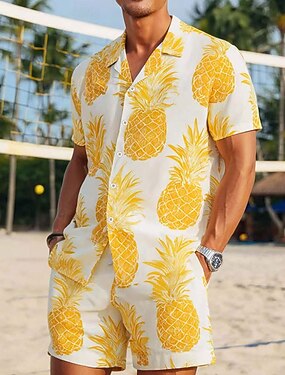 Homme Chemise en lin Chemise Aloha minimaliste Chemise Décontractée Chemise en coton et lin Chemise Boutonnée Cocotier Vacances Rue Noir Blanche Rose dragée Marine foncé Manche Courte Revers Été