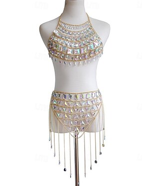 Samba Dancewear Ensemble de danse du ventre avec chaîne en or et gemmes iridescentes costume de performance