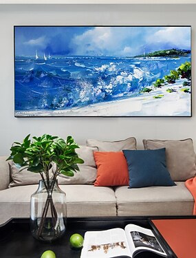 Peinture à l'huile 3D faite à la main texture bleu paysage marin peinture à l'huile sur toile grande peinture à la main moderne abstraite plage peinture paysage acrylique vague peinture pour mur art