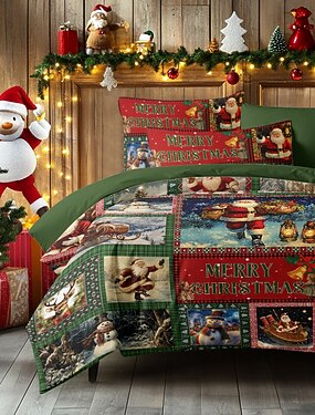 Ensemble de housse de couette de Noël au design patchwork de style vintage L'ensemble de couette de Noël complet comprend une housse de couette et des taies d'oreiller parfaites pour ajouter de la joie et du confort saisonniers à la décoration de votre ch