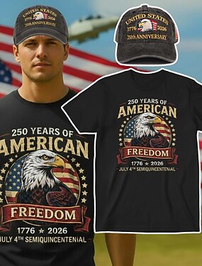 T-shirt et casquette de baseball du 250e anniversaire pour les États-Unis - T-shirt graphique aigle drapeau américain 1776-2026 patriotique pour hommes adultes pour le jour de l'Indépendance