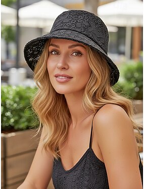 Bob bohème en dentelle pour femme, chapeau de soleil pliable en polyester respirant noir et blanc, idéal pour les vacances à la plage, le quotidien, les voyages et les séjours estivaux.