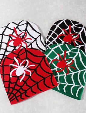 Homme Unisexe Bonnet Chapeaux d'Hiver Bonnets 骷髅头毛线帽 Chapeau Tricoté Bleu Ciel Noir Fibres Acryliques Jacquard Tricoté Confortable Halloween Tenue quotidienne Festival Araignée toile d'araignée Chaud