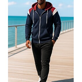 Homme Survêtement 2 pièces Sweat à capuche Lounge Ensembles de survêtements Cordon de serrage Bloc de Couleur Ensemble Vêtements Automne Noir Rouge Extérieur Voyage Sportif Évacuation de l'Humidité
