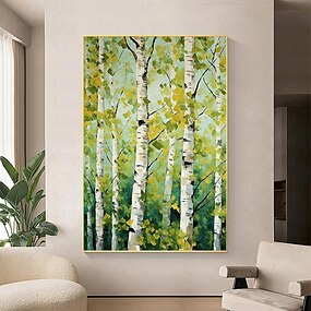 Peinture à l'huile d'arbre de ginkgo faite à la main sur toile, grande forêt verte, art mural abstrait, peinture personnalisée, décoration de maison pour salon, décoration murale