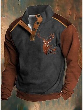 Homme Cerf Gauffré Sweatshirt Ethnique Occasionnel Vintage Rétro Chasse Col montant Zip quart Extérieur Vêtements de rue Voyage Vert Kaki Gris Zip Up Automne Hiver Designer S M L XL XXL XXXL