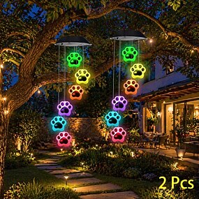 Lot de 2 carillons lumineux solaires d'extérieur en forme de patte de chat, lanternes suspendues étanches à couleurs RGB changeantes pour jardin, terrasse, porche, balcon, arbre – parfait pour une
