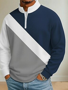 Homme Chemises Polo Gaufre Pull Occasionnel Sport & Loisir Zip quart manche longue Mode Confortable Zip Up Avec Poches Printemps & Automne Inter-saisons Automne & Hiver Coupe régulière Bleu Noir