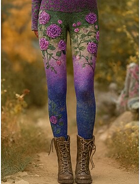 Leggings Capri pour femmes 3D Imprimés Haute Élastiqué Mode Streetwear Longueur Totale Taille Haute Floral Thermique Chaud Respirable Doux Extérieur Quotidien Rose Bleu Violet Vert Automne Hiver