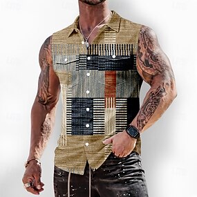 Homme Géométrique Ligne Art abstrait Chemise Chemise Boutonnée Manche Courte Vêtement décontracté de travaile Quotidien Extérieur Vacances Été Printemps Col Rabattu Impression 3D Chemise en lin Bleu