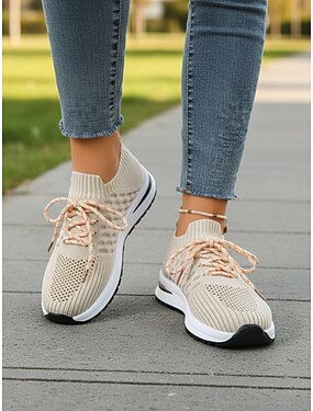 Baskets en maille pour femmes, faciles à enfiler – tige respirante en Flyknit, semelle légère, design décontracté style chaussette, idéales pour la marche, les voyages, le quotidien, le travail et les activités de plein air.