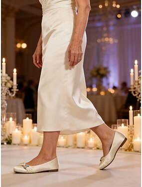 Chaussures de mariage à petits talons pour la mère de la mariée – élégantes chaussures habillées en satin champagne pour les mariages formels