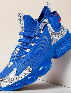 Baskets de sport bleues et argentées pour hommes - chaussures de course haute performance au design dynamique, idéales pour les modes de vie actifs et les activités de plein air