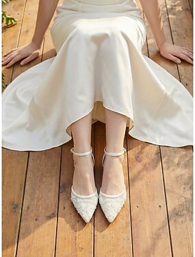 Escarpins à bout pointu et bride arrière pour femme, couleur ivoire, ornés de perles – chaussures de mariage élégantes en satin pour les rendez-vous romantiques et les garden-parties