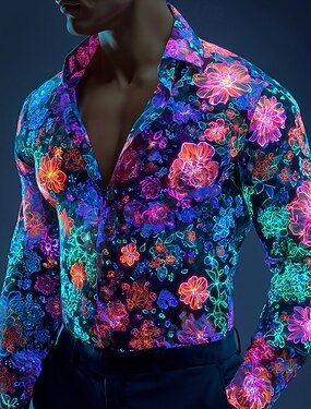Homme Imprimé Floral Lueur néon Fleurs Chemise Chemise Boutonnée Chemise décontractée manche longue Hawaïen Vacances Quotidien Vêtements de rue Été Printemps Col Rabattu Impression 3D chemises à col