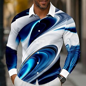 Homme Géométrique Dégradé de Couleur Art abstrait Chemise Chemise Boutonnée manche longue Mode Décontractée Extérieur Tenue Quotidienne Printemps Automne Col Rabattu Impression 3D chemises à col Bleu