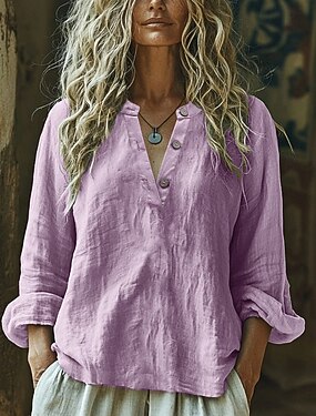 Femmes Chemisier Chemise en faux lin Boutons Couleur Unie ancien Élégant Occasionnel Manche 3/4 Col en V Hauts Réguliers Quotidien Blanche Jaune Vert Véronèse Gris Clair Bleu clair Été Printemps