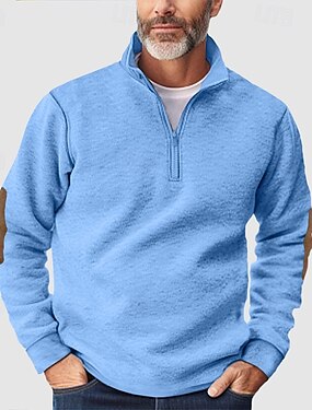 Homme Sweat-shirt Sweat à capuche Pull Sweat-shirt quart de fermeture éclair Bleu Denim Noir Blanche Jaune Vert Véronèse Col montant Uni Patchwork Bloc de Couleur Occasionnel Quotidien Sport & Loisir