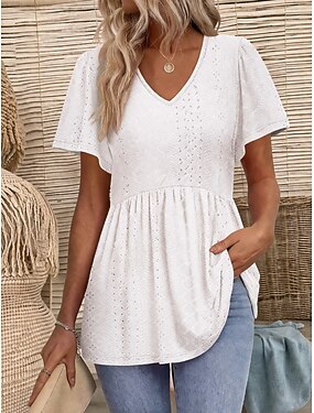 Femmes Haut à œillets T-shirt à pointelle Texturé Graphique Élégant Sexy Classique Manche Courte Col en V Hauts Réguliers Occasionnel Quotidien Plage Noir Blanche Jaune Rose Claire Rose poussiéreuse