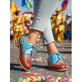 Brogues à motif patchwork multicolore pour femmes avec lacets - Style artistique rétro pour les parades de carnaval costumes de festival et célébrations de fête