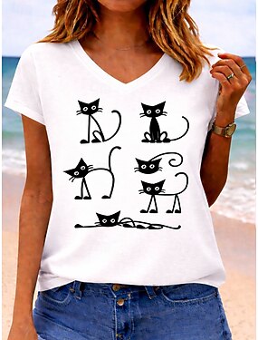 Femmes T-shirt Imprimé Graphique Élégant Classique Occasionnel Manche Courte Col en V Hauts Réguliers Quotidien Noir Blanche Rouge Rouge et blanc Été Printemps