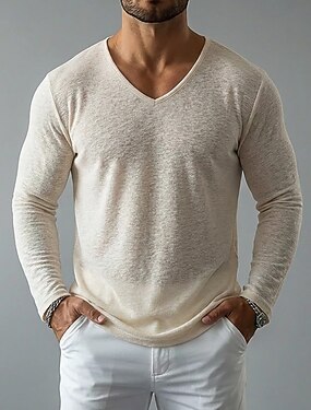 Homme T-shirt manche longue Col en V Été Printemps Uni Mode Designer Léger Classique Flexible Pur Occasionnel Vacances Rue Noir Violet Vert T-shirt haut de gamme pour homme