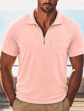 Homme Polo en Coton Chemise de golf Tenue quotidienne Date Zip quart Manche Courte Mode Basique Uni Fermeture éclair Avec Poches Été Printemps Printemps & Été Coupe régulière Vert Armée Noir Rose