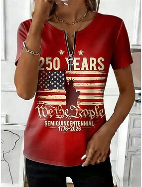 T-shirt Femme Patriote Journée de l'Indépendance Anniversaire Américain T-shirt Zippé Graphique Drapeau Américain Élégant Classique Décontracté À Manches Courtes Encolure Ronde Hauts Quotidiens