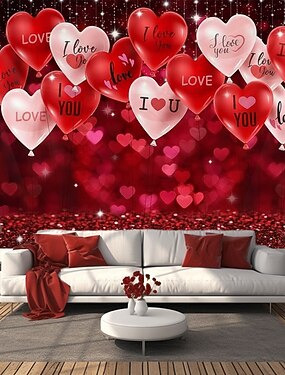 Décorations de mariage Décor de fond Photographie Mur suspendu Grande Tapisserie Art Décor mural Couverture Rideau Décoration Maison Chambre Salon Décoration Cœurs Ballons