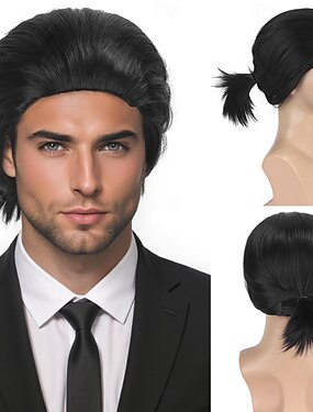 Perruque Synthétique Lisse Tressé Tresse Avec frange Avec queue de cheval Fabriqué à la Machine Perruque 14 pouces Noir naturel #1B Cheveux synthétiques Homme Classique Confortable Exquis Noir