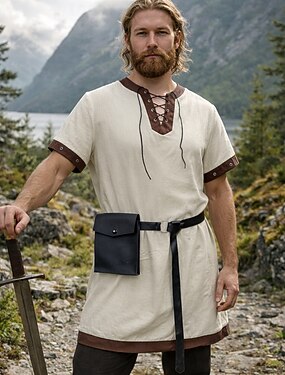 Set Rétro Vintage Médiéval Renaissance Ceinture Taille Sac Banane Tunique avec accessoires Manches courtes Viking Ranger Col rond Déguisement Homme Fantaisie Halloween Carnaval Soirée Foire de la