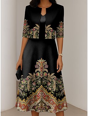 Femmes Robe Ensemble Robe trapèze Robe d'été Occasionnel Robes semi-formelles Graphique Géométrie Imprimé Robe Midi Demi Manches Col en V Vacances Date Noir Vin Vert Printemps Automne Coupe régulière