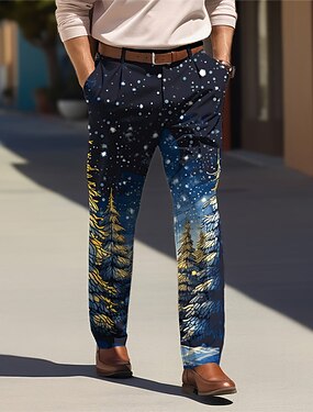 Arbre de Noël Entreprise Décontractées Homme Impression 3D pantalon de costume Pantalon Extérieur Usage quotidien Vêtement de rue Noël Polyester Noir bleu marine Marron S M L Taille médiale Élasticité