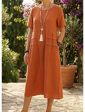Femmes Robe Midi Coton mélangé Robe fourreau Robes en coton et lin Robe Décontractée Classique Moderne Quotidien Week-end Coupe régulière Uni Manche Courte Col ras du cou Bleu Noir Jaune Rose Claire