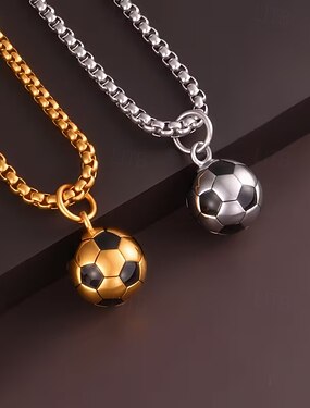 Lot de 1/2 collier 3D de football, pendentif en acier inoxydable pour hommes, garçons et adolescents, bijou sportif résistant pour les joueurs de football &éventails, un cadeau idéal pour lui,