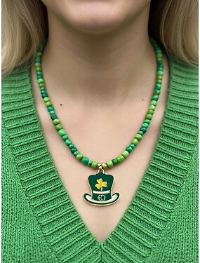 Collier acrylique pour femme pour la Saint-Patrick, orné de trèfles et de chapeaux, disponible en plusieurs styles, perles vertes, idéal pour les fêtes et les occasions spéciales.