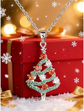 Collier pendentif sapin de Noël pour femme avec décoration en strass vert et rouge, cadeau de bijoux de vacances