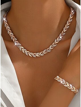 Ensemble collier et bracelet en alliage de zircon pour femme – élégant, tons or et argent, parfait pour les occasions spéciales et les cadeaux.