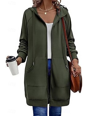 Femmes Veste à Capuche Confortable Respirant Fermeture éclair Avec Poches Occasionnel Uni Vacances Rue Occasionnel Tenue quotidienne Fermeture éclair Long À capuche Coupe régulière manche longue
