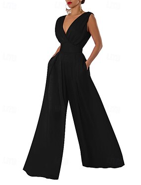 Femmes Normal Combinaison Élégant Couleur Unie Sans manches Jambe large Col en V Plissé Vacances Fête Coupe régulière Noir Vert Véronèse Rouge Été