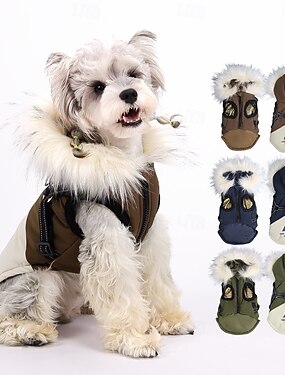 Manteau d'hiver pour chien avec bordure en fausse fourrure - coupe-vent &Gilet imperméable matelassé pour animaux de compagnie de petite et moyenne taille